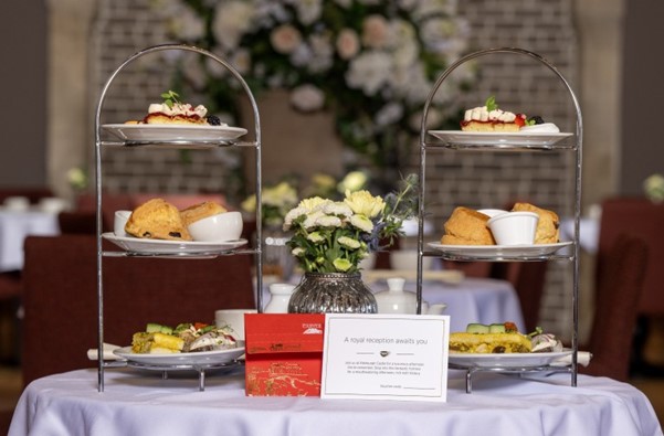 Our Tea Room is located in the heart of the castle, Crown Square. The interior of the tea room has been painted with bright light colours, giving it a stylish yet elegant touch, which complements the grandeur of the castle. Savour the exquisite food and drink on offer as the echoes of the past whisper through the castle walls, creating the perfect setting to relax and enjoy our afternoon tea.